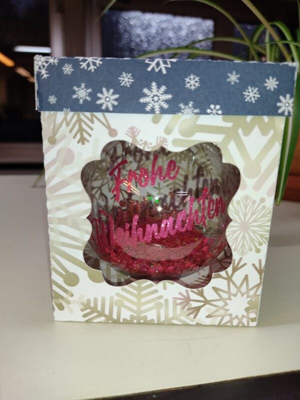 Die Geschenkbox für die personalisierten Weihanchtskugeln fertige ich aus stabilem Designkarton passend zu Deiner Wunschkugel.